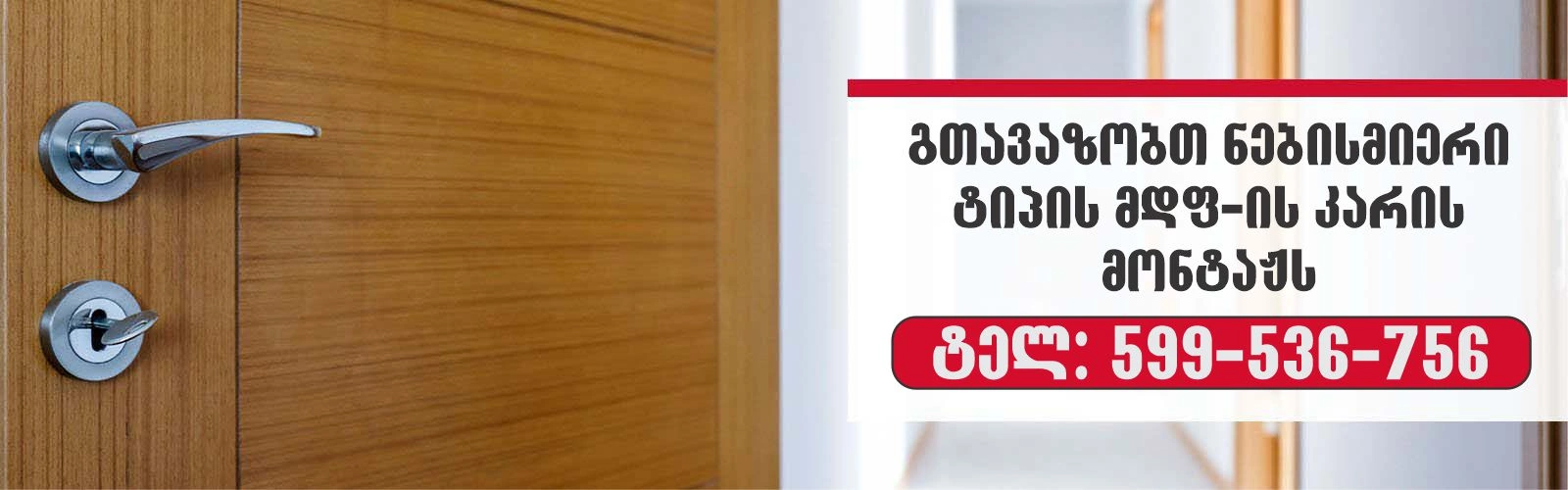 გთავაზობთ ნებისმიერი ტიპის მ.დ.ფ -ის შიდა კარის მონტაჟს, კონსულტაციას. შესაძლებელია კარის ადგილზე გადაჭრა სიმაღლეში ასევე საკეტის ამოღება. კორპორაციულ კლიენტებთან მოქმედებს მნიშვნელოვანი შეღავათები. დეტალური ინფორმაციისთვის დაგვიკავშირდით: 599-536-756